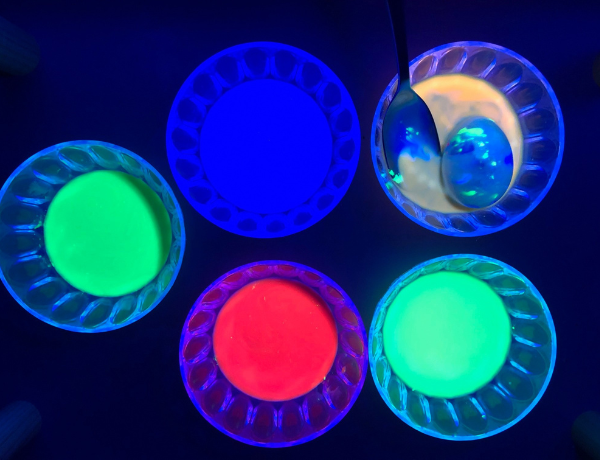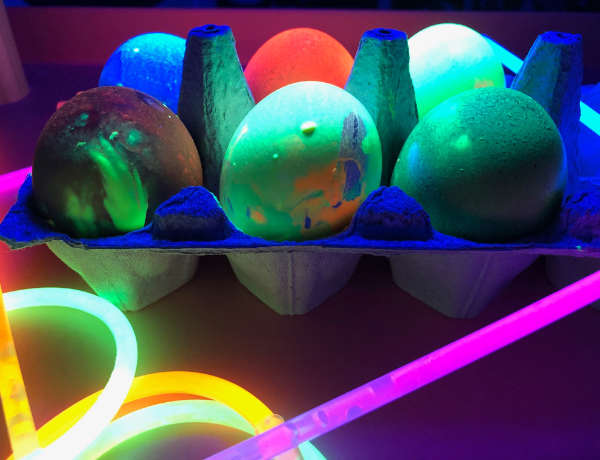 Shine the blacklight over the eggs and illuminate all the funky neon effects you’ve created. Far out, huh?
