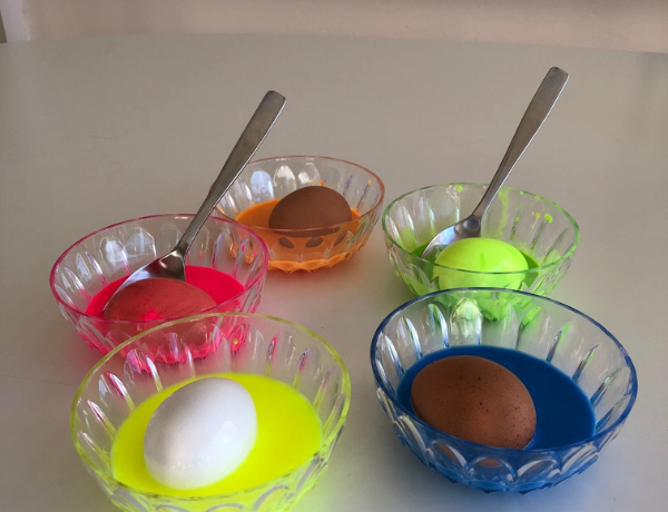 Both brown and white eggs work for neon glow-in-the-dark eggs, but brown eggs will produce earthier-looking colors.
