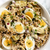 - Add pasta to the bowl with the dressing along with half of the eggs and gently stir to combine.