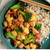 - Divide cooked rice and stir-fry mixture evenly over 4 plates.