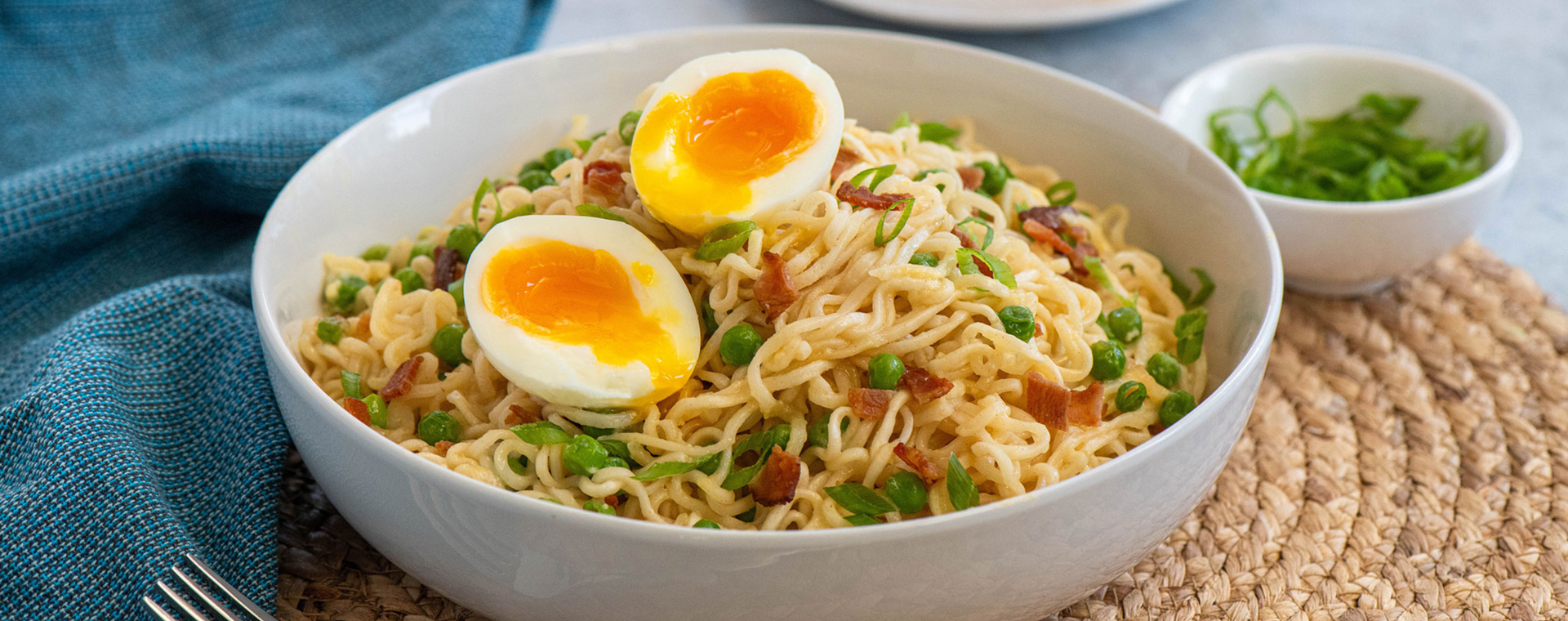 Carbonara is a classic Italian pasta dish that seems to magically transform a few humble ingredients into a flavorful dinner in the time it takes to cook the noodles, and this recipe offers an unexpected twist: ramen noodles!