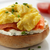 3. Spread bagels with cream cheese. Top each with 1 salmon slice and 1/4 of the eggs.